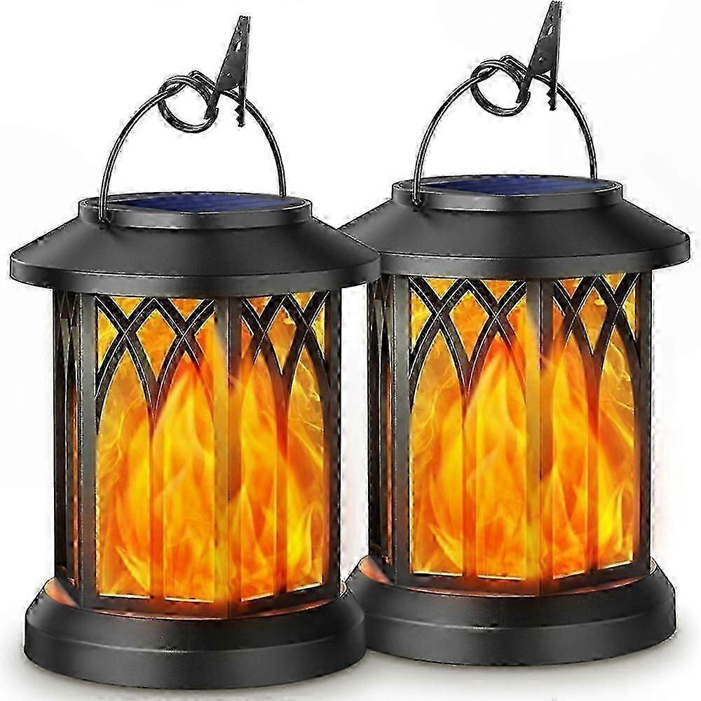 Outdoor Solar Lanterns with Flame Effect, 2 Pack Waterproof Garden Lights for Hanging Decor, IP65 Weatherproof