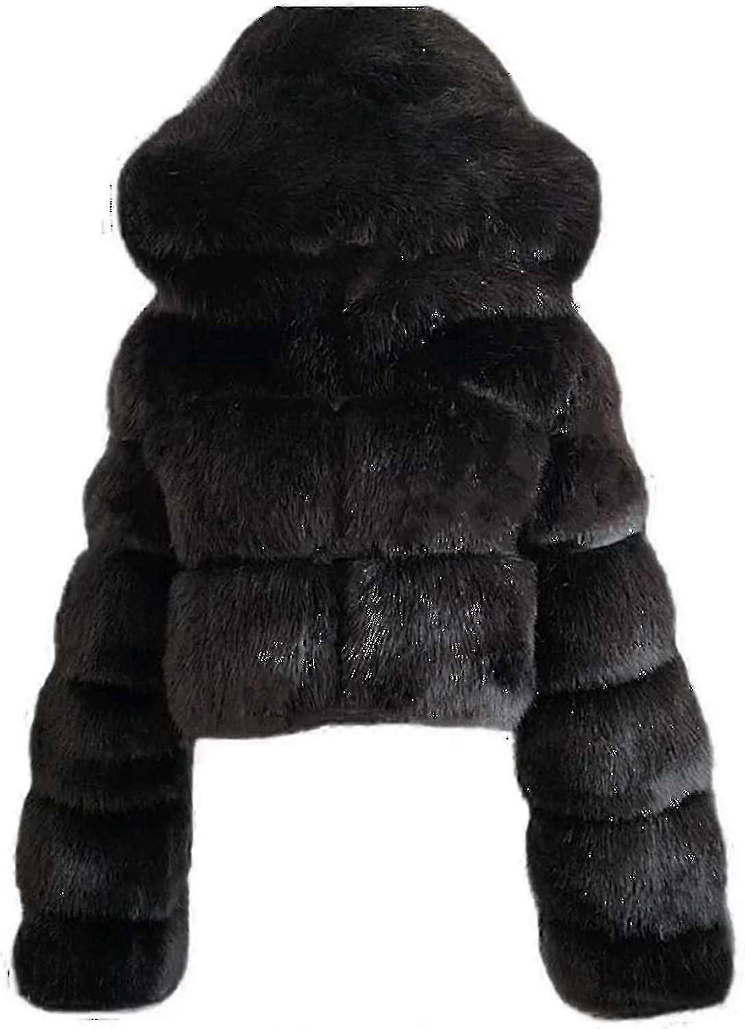 Faux Fur Coat Women With Hood Cropped Bubble Coats Fleece Short Warm Jackets Plus Size Winter Coats For Women High Quality