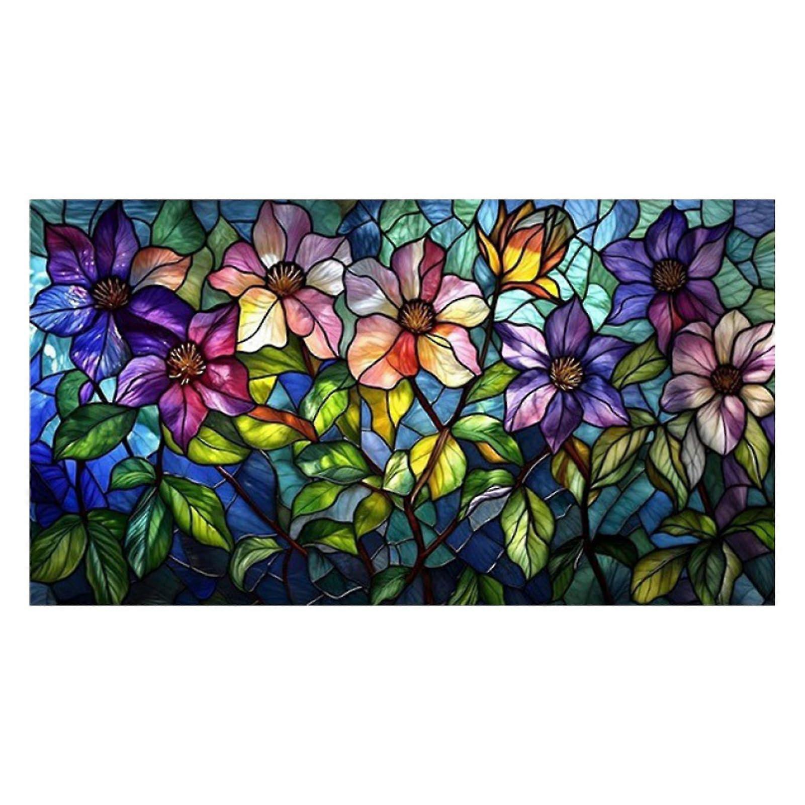 Window Privacy Film, Heat Control Sun Blocking Stained Glass, NonAdhesive Floral Design 3D Static Cling