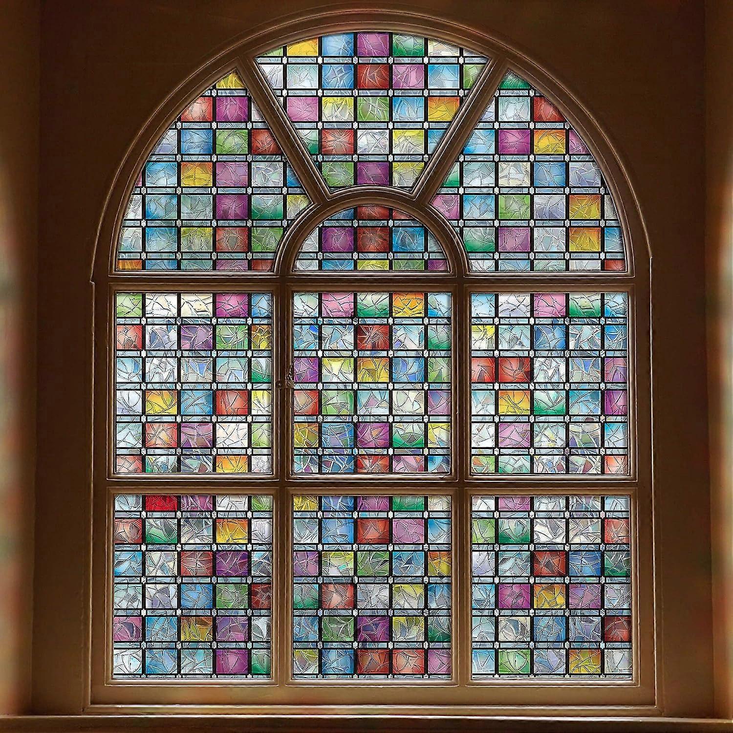 Stained Glass Window Film, Privacy Film for Window, Rainbow Tint, Self Adhesive Static Window Film, Decorative Window Stickers for Home, UV Resistant