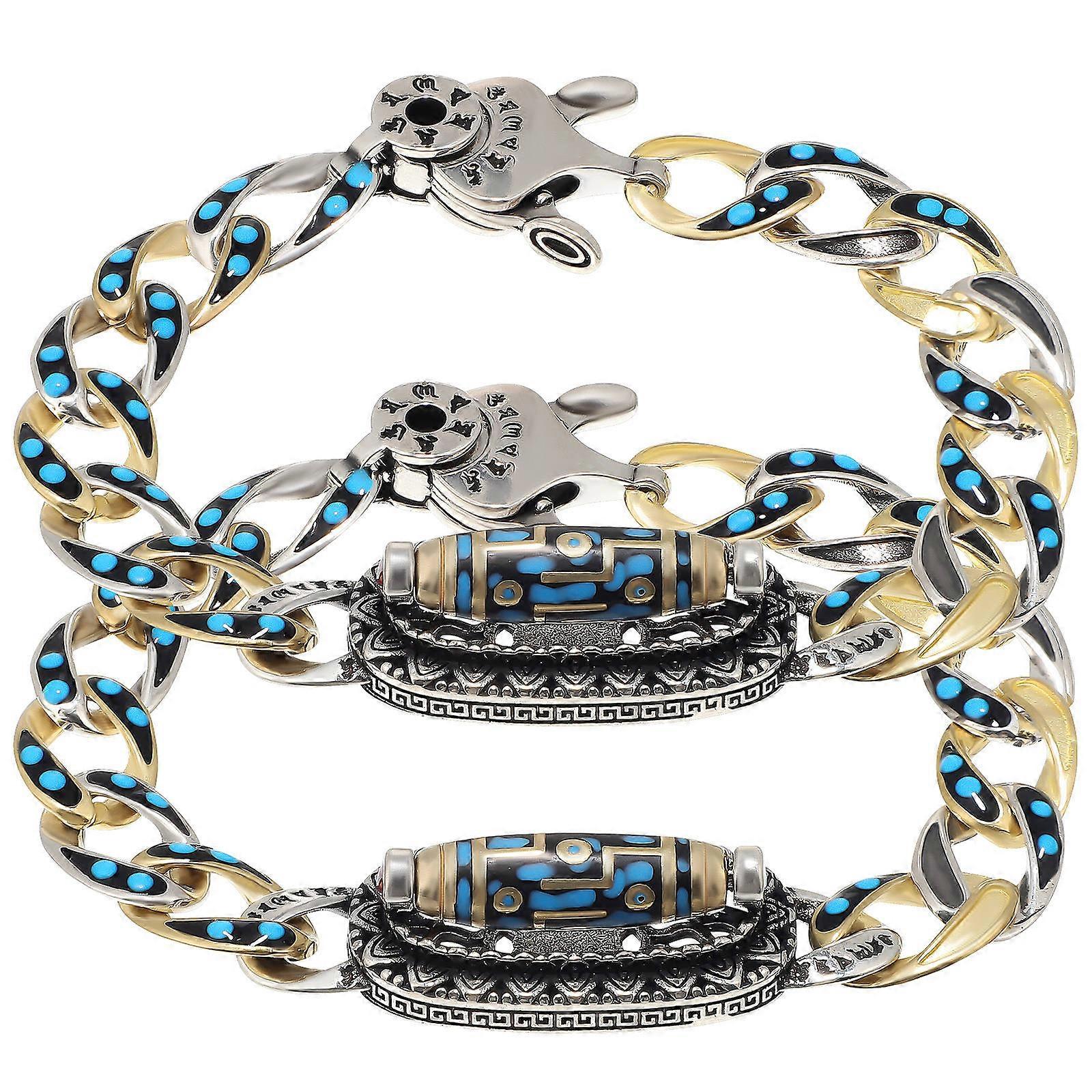 Here's a refined and professional product description for your **2pcs Turquoise Bracelet Wrist Jewelry with Traditional Nine Eye Dzi Beads**: