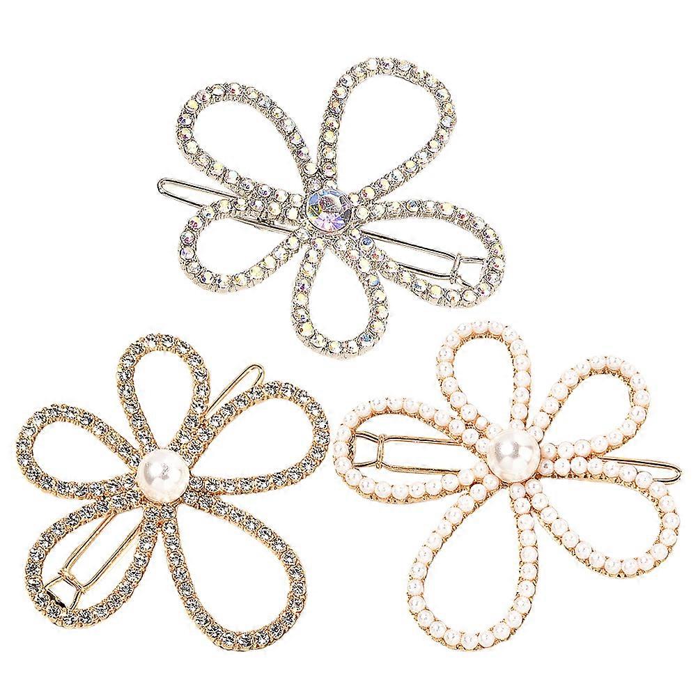 Here's a polished and professional product description based on your input: **3PCS Flower Barrette Set – Pearl Hair Clips for Decorative Hair
