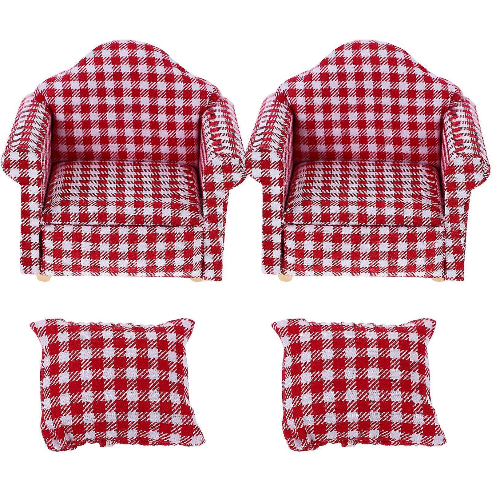 Here's a polished and engaging product description based on your input: **2pcs Miniature Wooden Single Sofa – Plaid Design Dollhouse Furniture