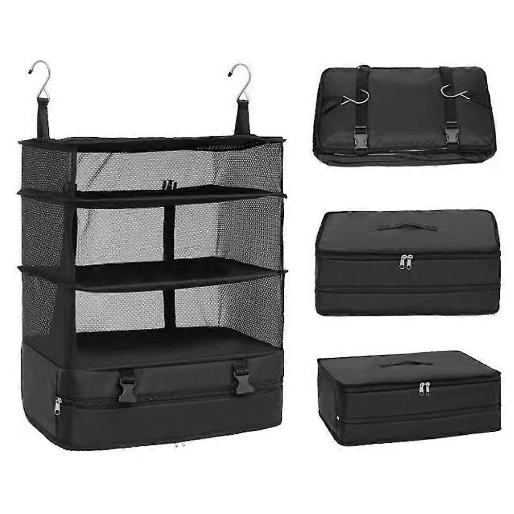 Convenient and practical storage hanging basket for outdoor camping. Specifications: Material: Canvas Color: Black Layer: 4 Layers Folded Size: 40 * 25 * 3.5cm / 15.7 * 9.8 * 1.4in Unfold Size: 40 * 25 * 20cm / 15.7 * 9.8 * 7.9in Stretch Size: 40 * 25 * 54cm / 15.7 * 9.8 * 21.2in Hook Length: 13cm / 5.1in Item Weight: 680g / 24oz Package List: 1 * Storage Bag