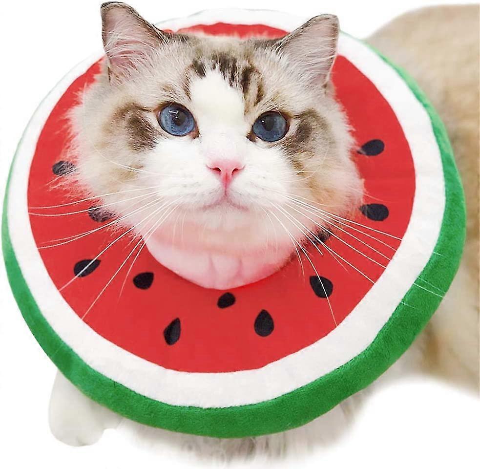 Adjustable Recovery Cone Neck Collar Soft Elizabeth Circle for Dogs Cats, Red Watermelon, Medium