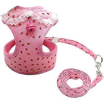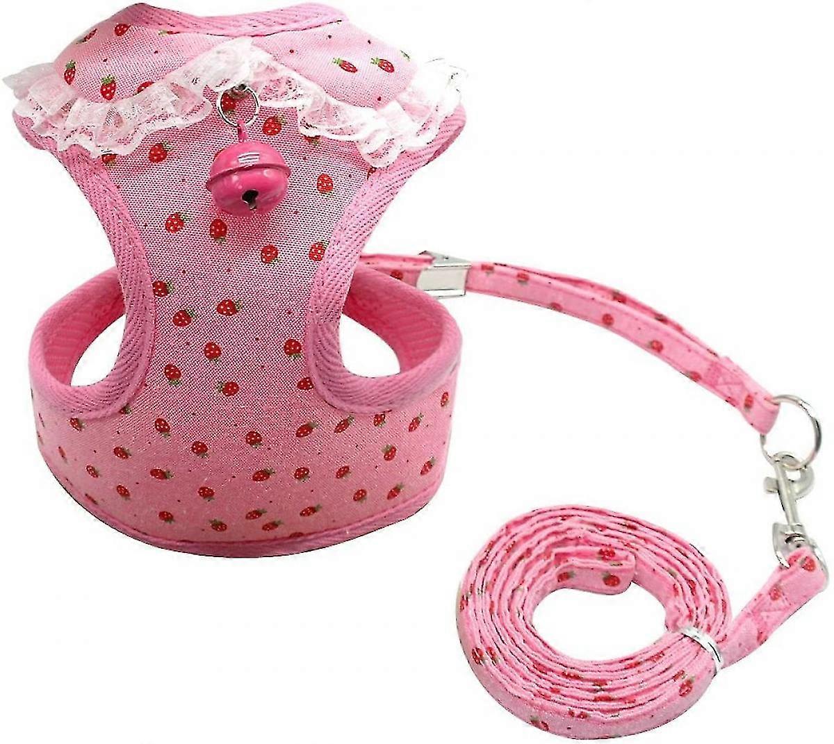 Adjustable Pet Mesh Vest Harness And Leash Set With Cute Bell For Puppy Small Medium Dogs And Cats,pink Strawberry,m:chest 11-17"