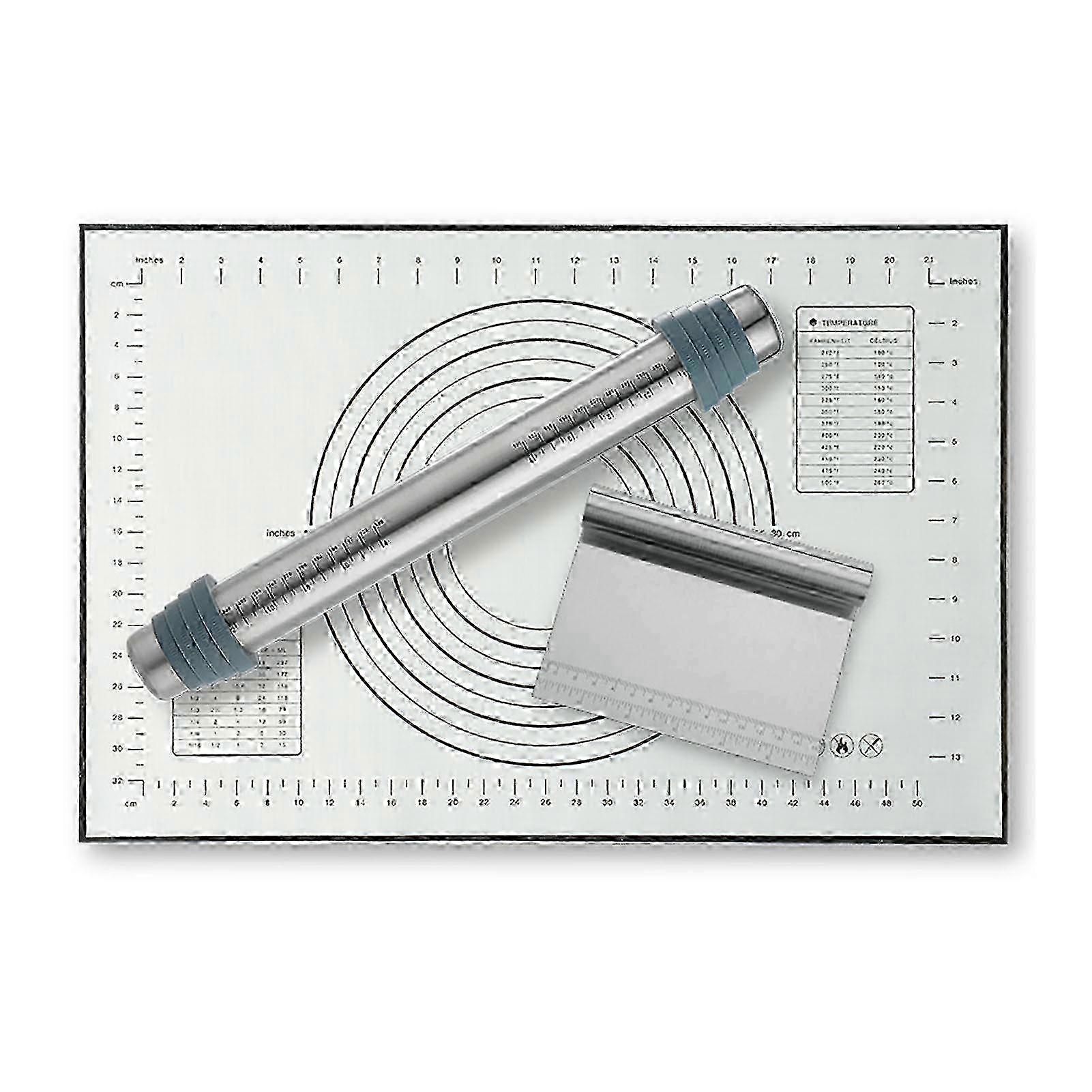 Adjustable Thicknes Flour Rolling Pin with Scale Mat Dough Scraper 430 Stainless Steel Cooking Tools Baking Utensils