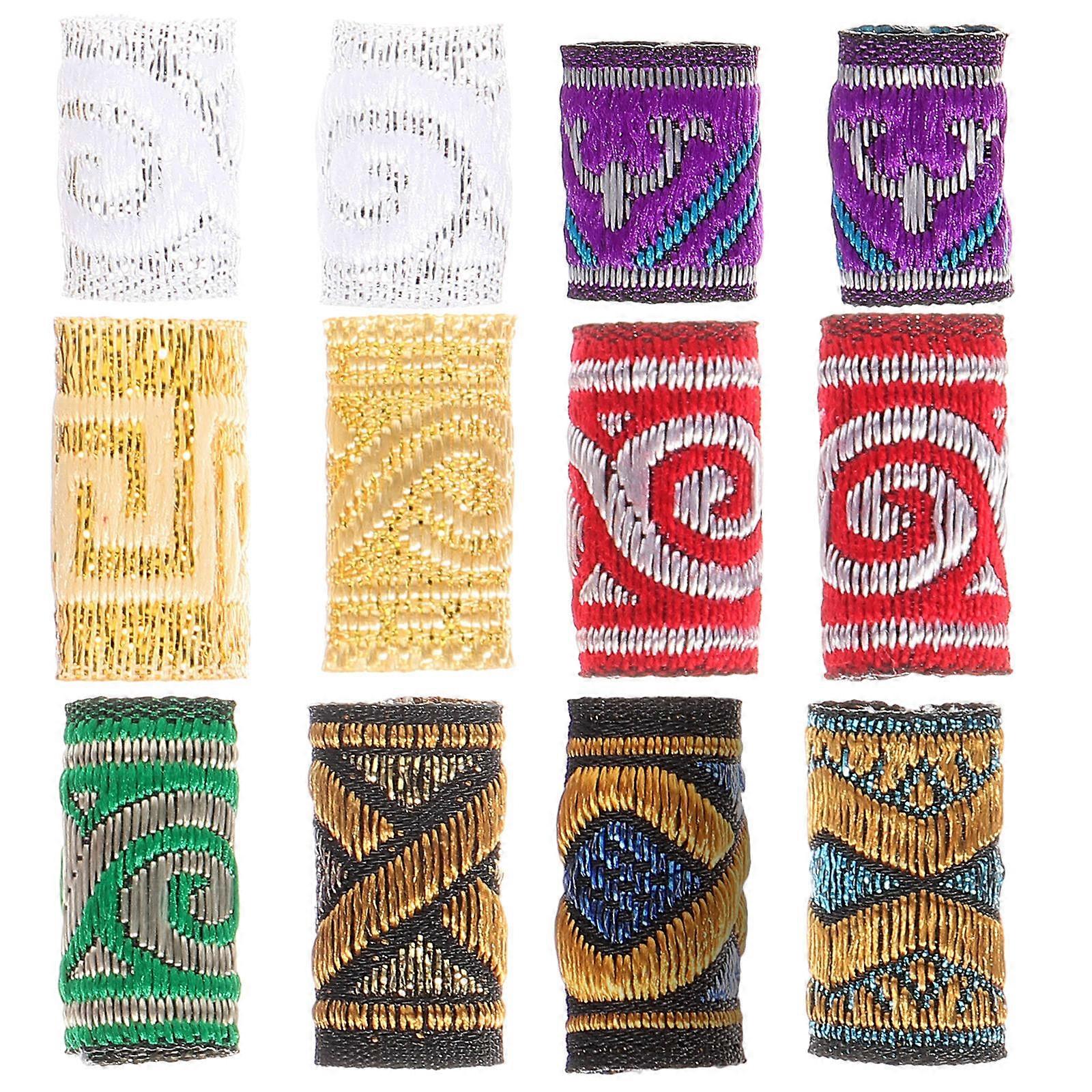 Adjustable Dreadlock Beads Colorful Cloth Hair Rings Mixed Style 2x0.7x0.7cm Hair Jewelry For Women Braids 12Pcs