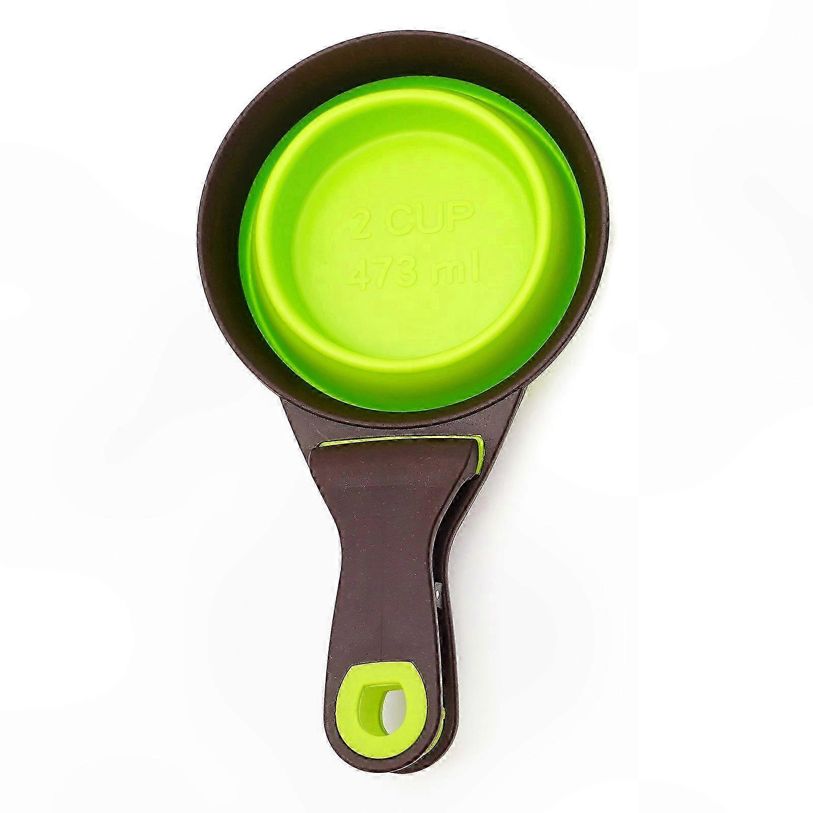 Collapsible Pet Scoop Silicone Measuring Cups Sealing Clip 3 in 1 Bowl for Dog for Cat Food Water 1 Cup 1/2 Cup 1/4 Cup Pink