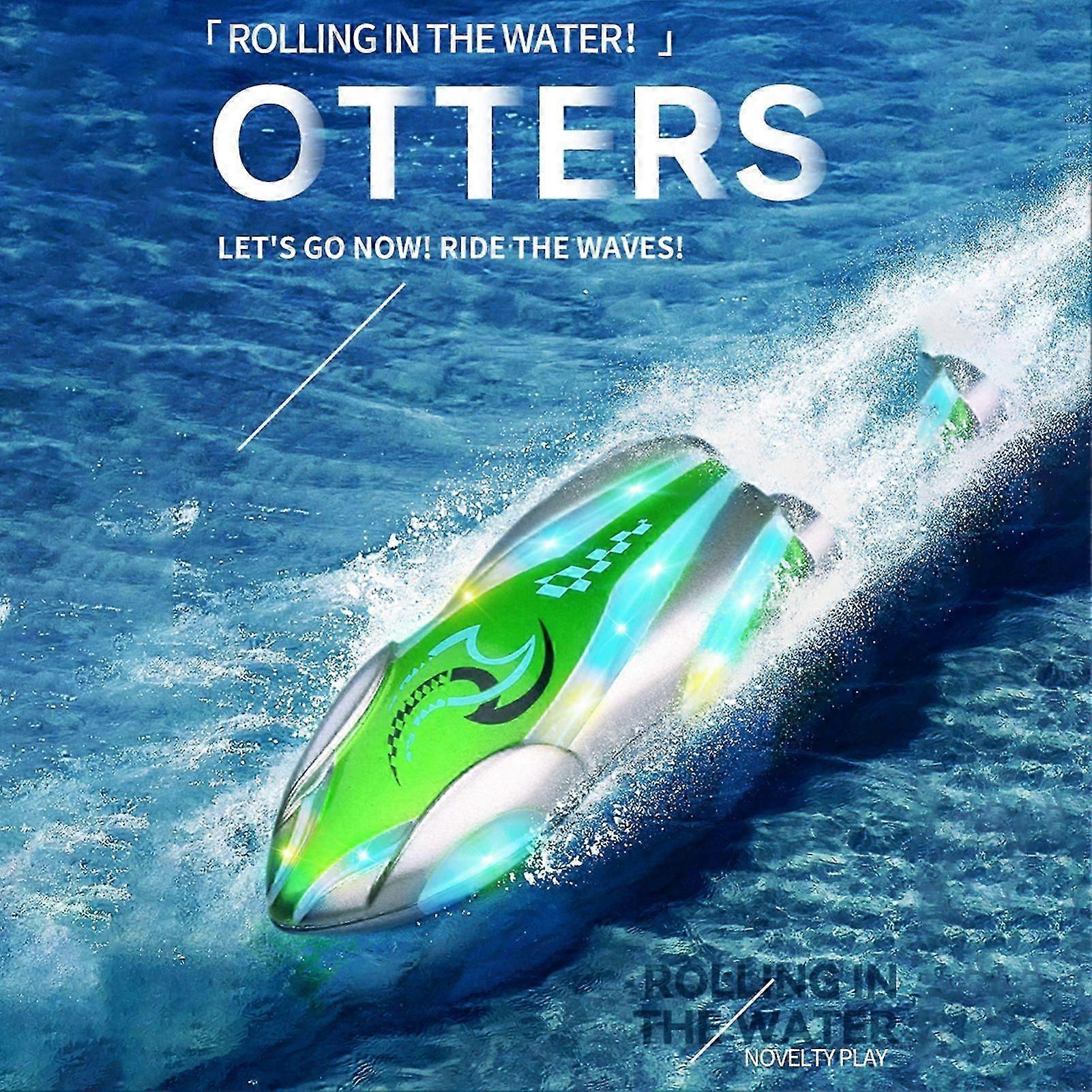 Remote Control Boat for Kids, 2.4GHz High-Speed Remote Control Stunt Boat for Seaside Pool Bathtub, Waterproof Boat Toy with LED Light (Purple