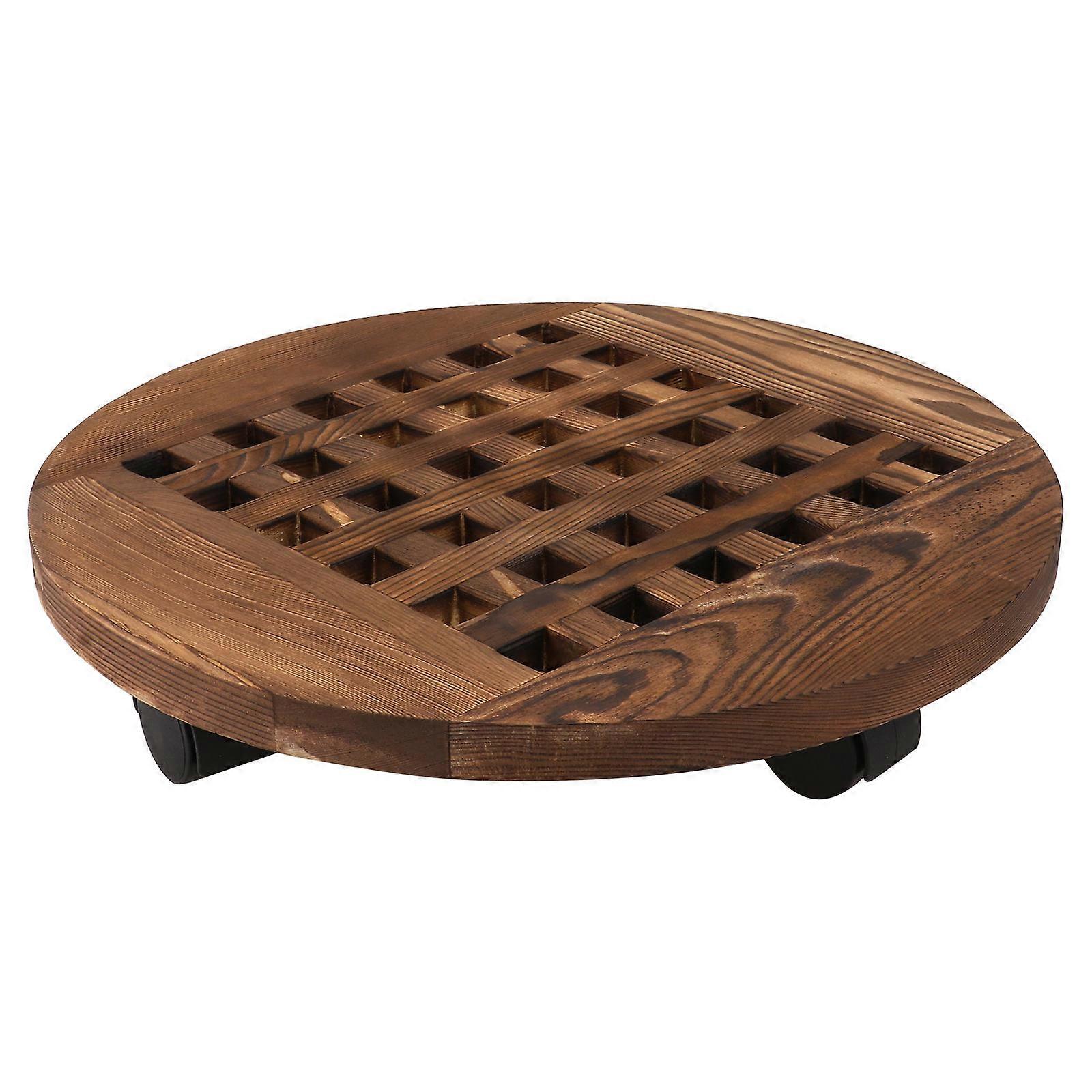 Flowerpot Tray Base Light Brown Wood Design For Garden Patio 35x35x5cm Hold Flower Pots and Plants 1Set