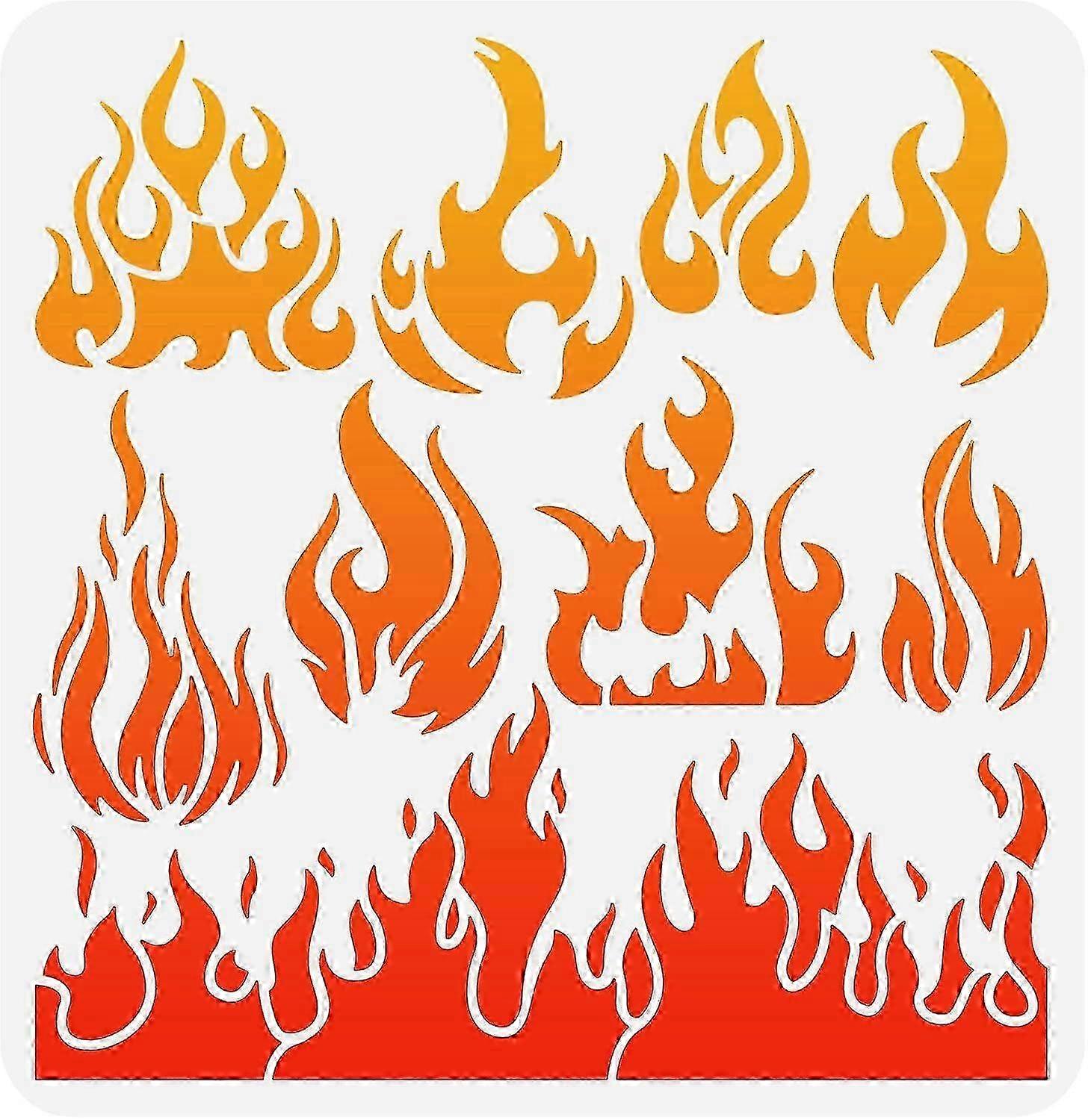 Flame Stencil 11.8x11.8 inch Reusable Fire Stencil Plastic 9 Styles Fire Pattern Stencil Flame Painting Decor Template for Arts Window Wall Craft