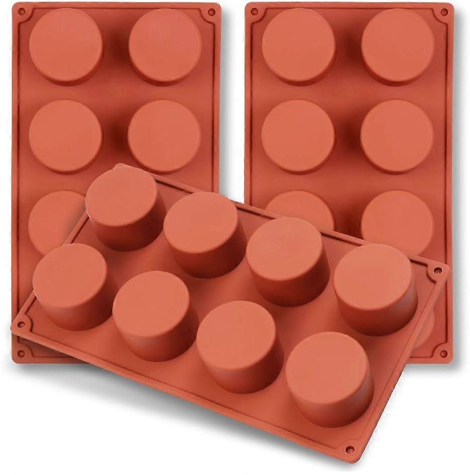 8-Cavity Cylinder Silicone Mould, 3 Packs Cylinder Moulds for Making Handmade Soap, Chocolate, Soap Candles and Jelly-Brown