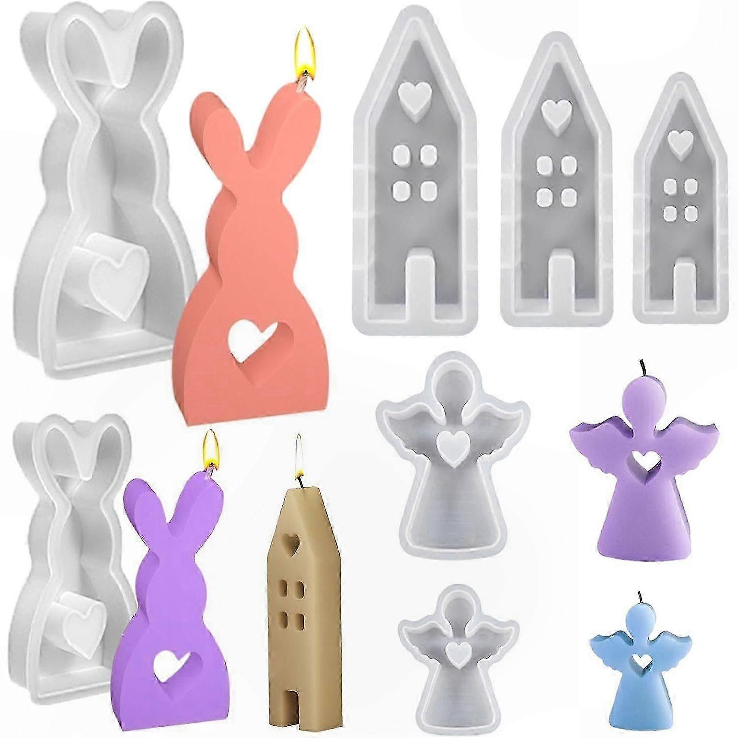 Rabbit-Shaped Silicone Candle Mold with 7-Piece Holder for Creative Home Decoration