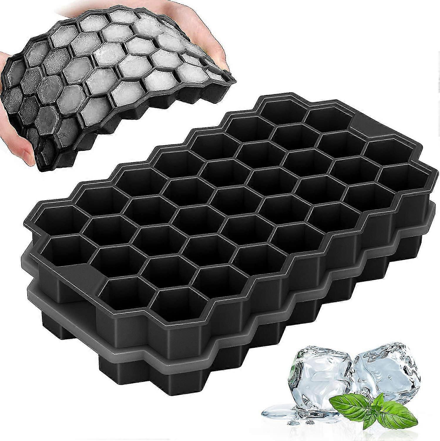 Ice cube mold silicone ice cube mold 2-pack 37-compartment with lid ice cube tray BPA-free ice cube trays for beer cocktails whiskey (black)