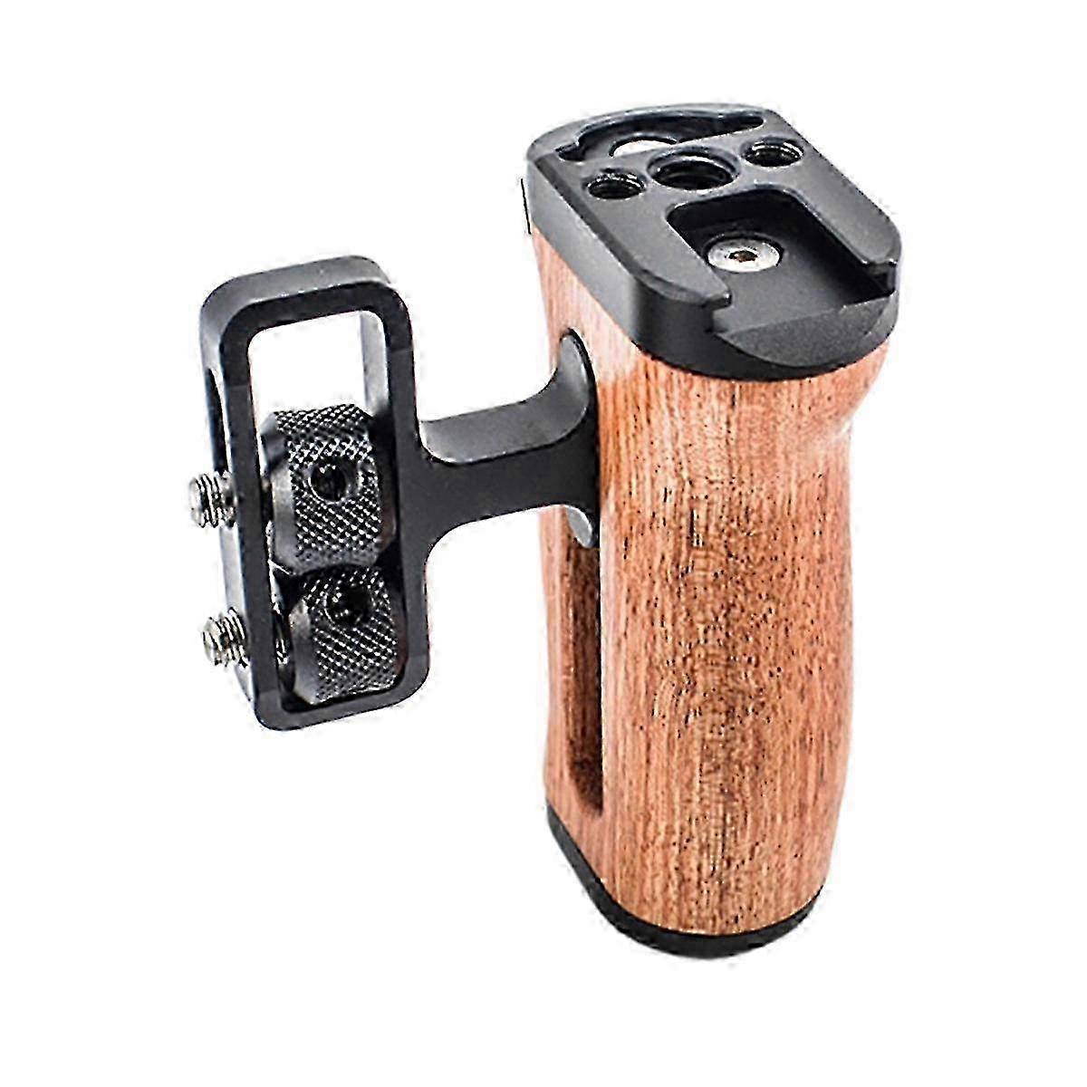 Camera Side Handle Grip for // DSLR Camera Cage Left Right Side Wooden Handgrip with Cold Shoe
