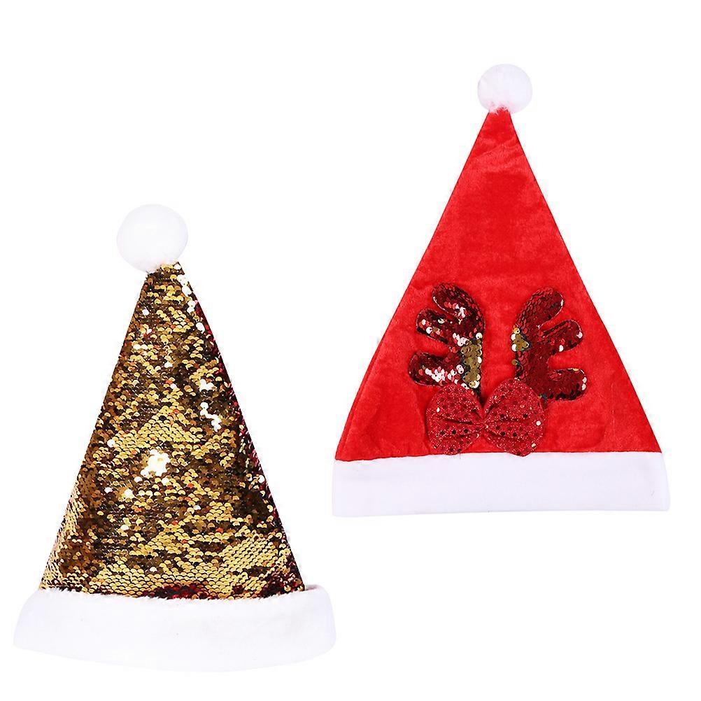 Christmas Hats 2 Pcs Cloth Assorted Colors NonFading Adult Size for Party Decoration Home Gathering