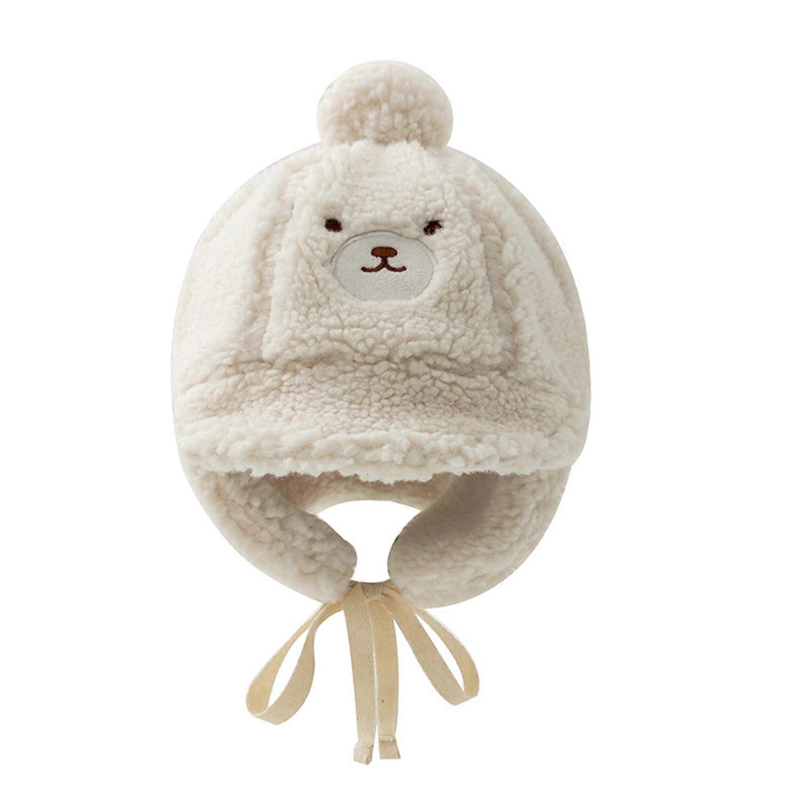 Soft Winter Plush Caps Comfortable Baby Warm Bonnet Hat for Kids with Cute Cartoon Designing and Ear Protections Part Milky White