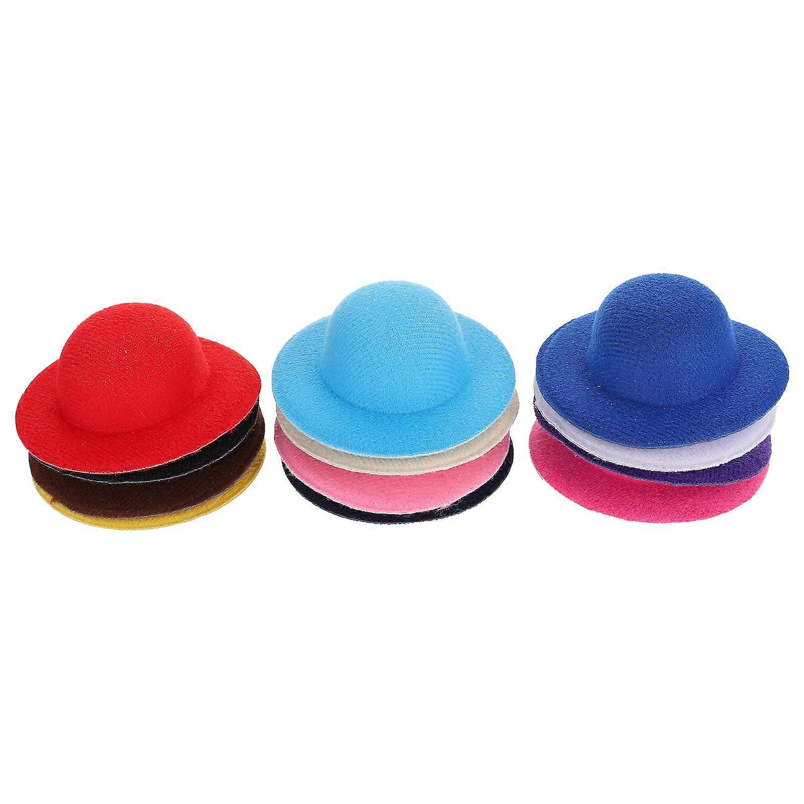 Miniature Hats for Crafts Mini Fabric Hat Doll Decoration Round Brimmed Shape 2.75X2.75X0.59IN 12Pcs