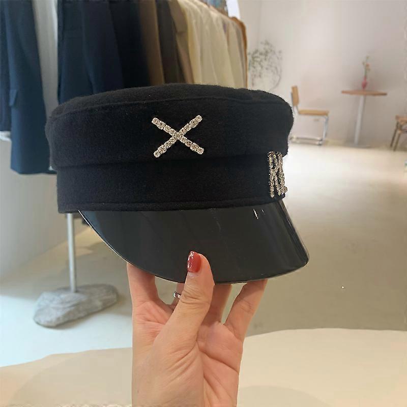 New Women Hats Crystal baker boy hat Wool Newsboy Caps Female Flat Militray Caps Visor S-XL