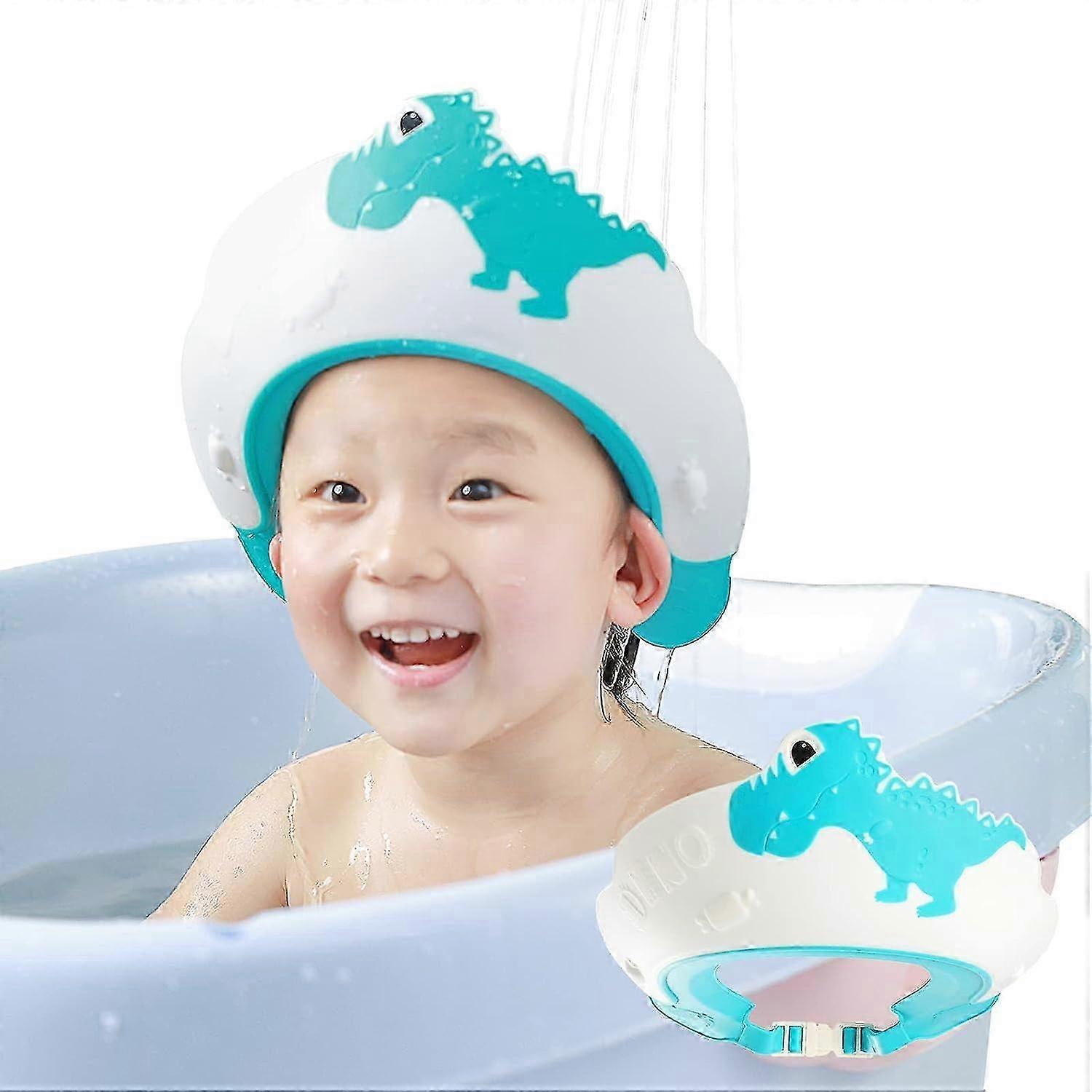 Baby Shower Cap for Kids Adjustable Hair Wash Cover Bath Towel Dinosaur Blue Baby Bath Cap