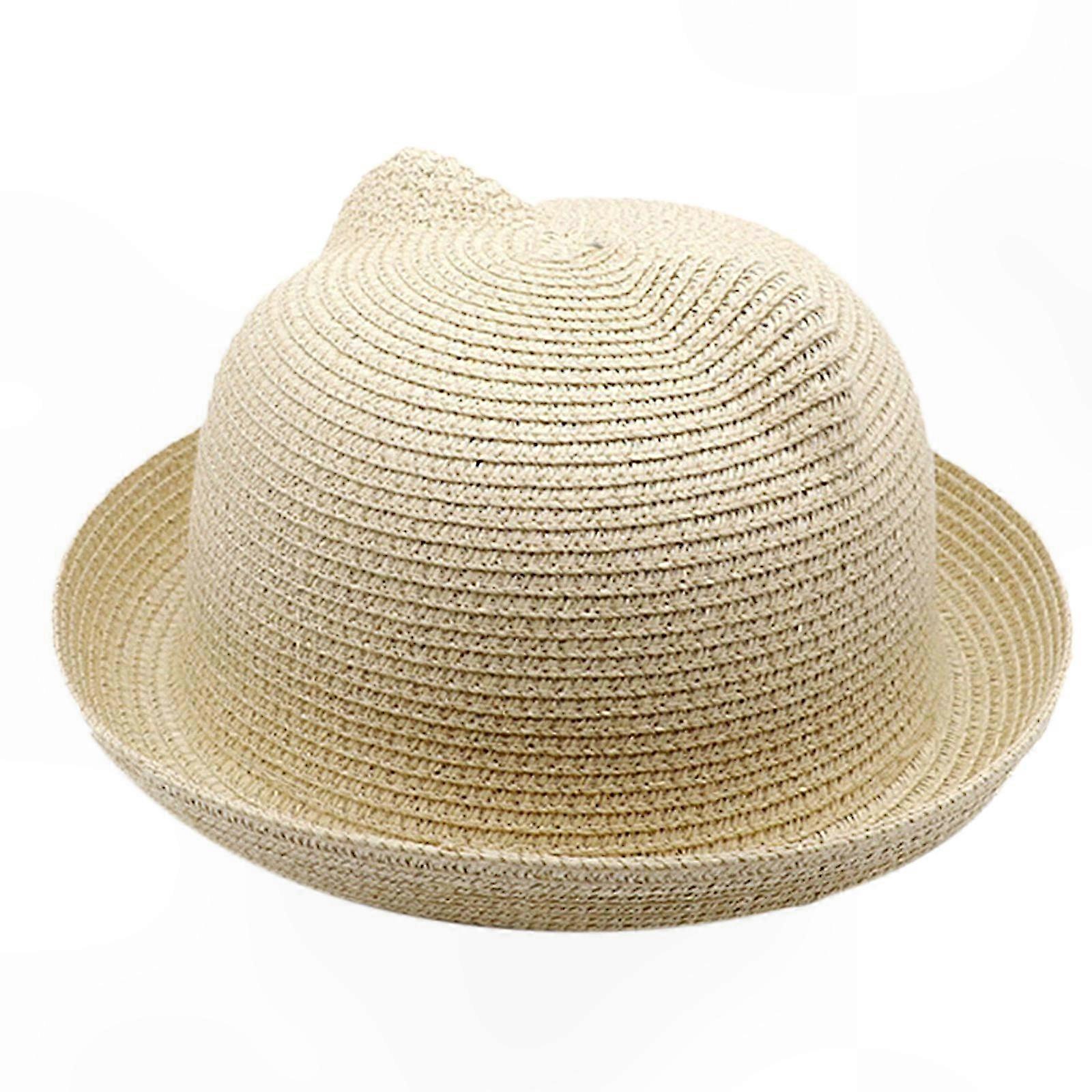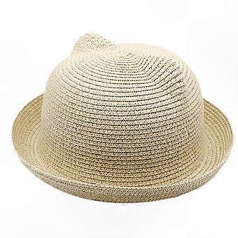Summer Straw Hat for Kids and Adults with Cat Ears Design for Beach and Outdoor Use Milky