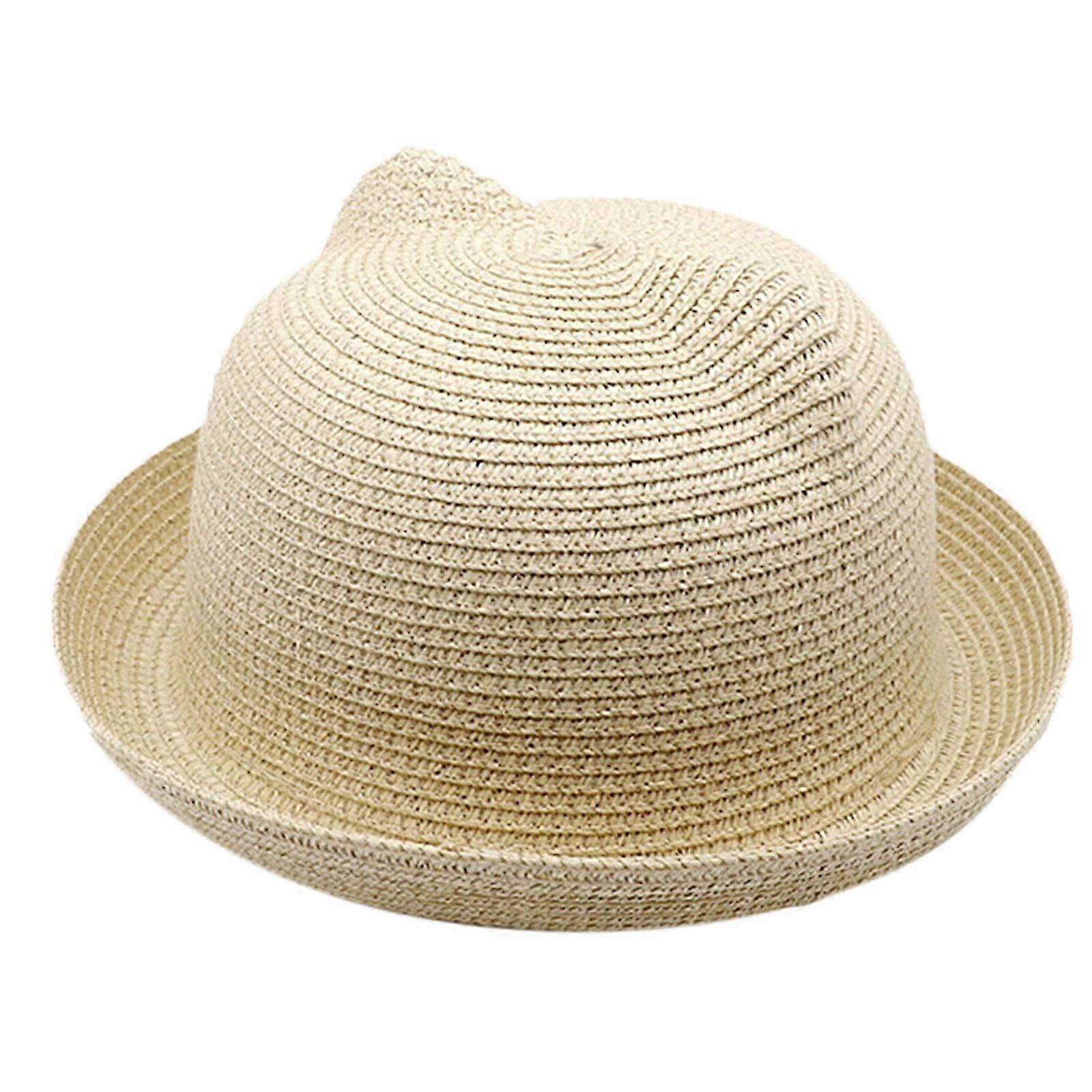 Parent-child Straw Hat Summer for Cat Ears for Sun Hat Beach Cap Sunshade Fisherman Hat Visor Hat for Street Shooting Milky Adult