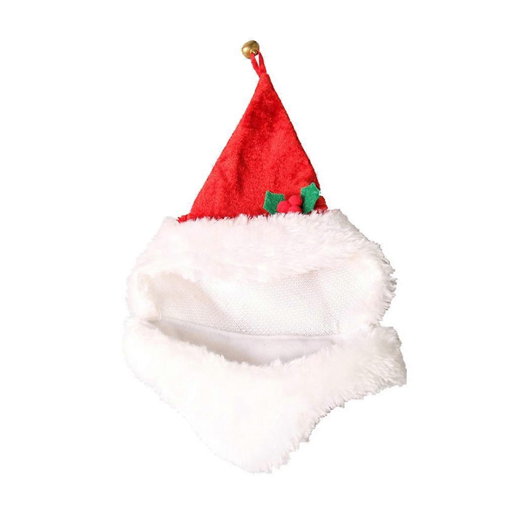 Red Christmas Pet Hat With Beard For Cat And Dog Parties Ideal For Photo Taking Free Size 1Pcs