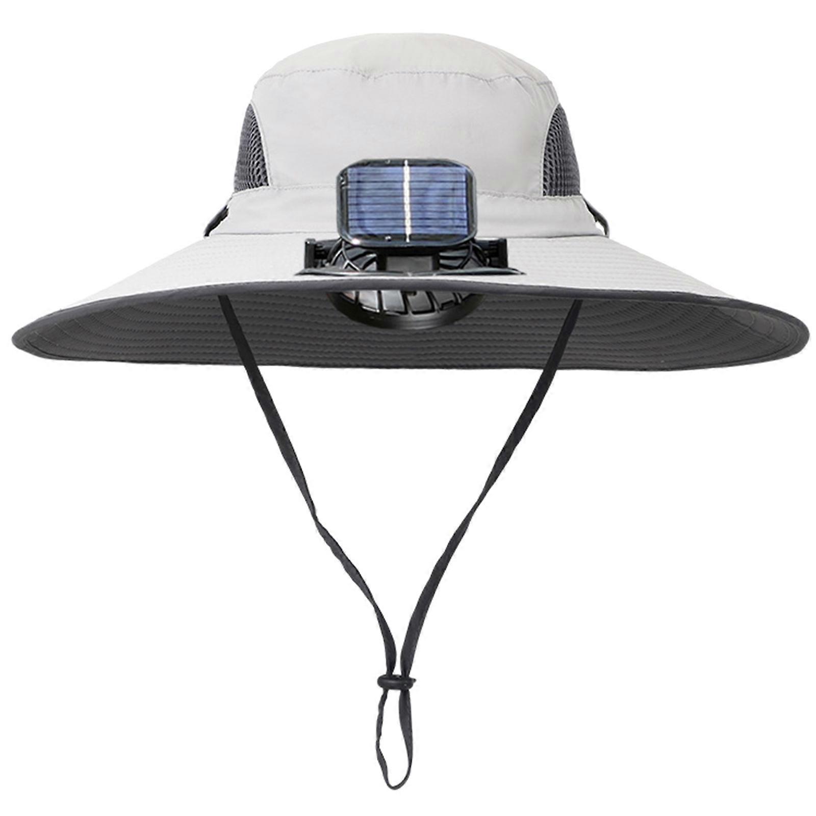 Nylon Sun Hat with Builts In Powerful Fan, Solar Charged Sunblocking Hat for Fishermen and Sports Highly Power Fan Caps light grey
