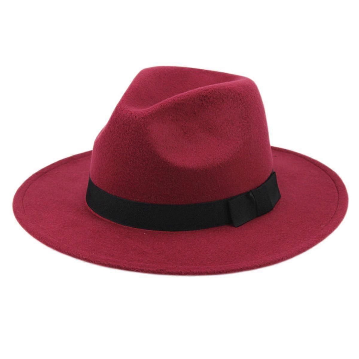 Classic Unisex Structured Wool Fedora Hat for Men and Women (Wine Red)