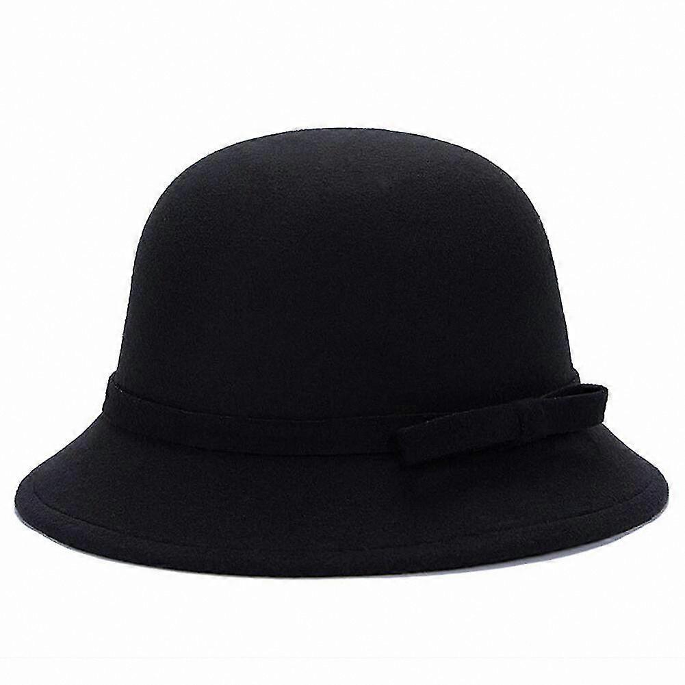 Vintage Wool Felt Cloche Hat with Bow for Women - Round Fedora Style Bowler Cap