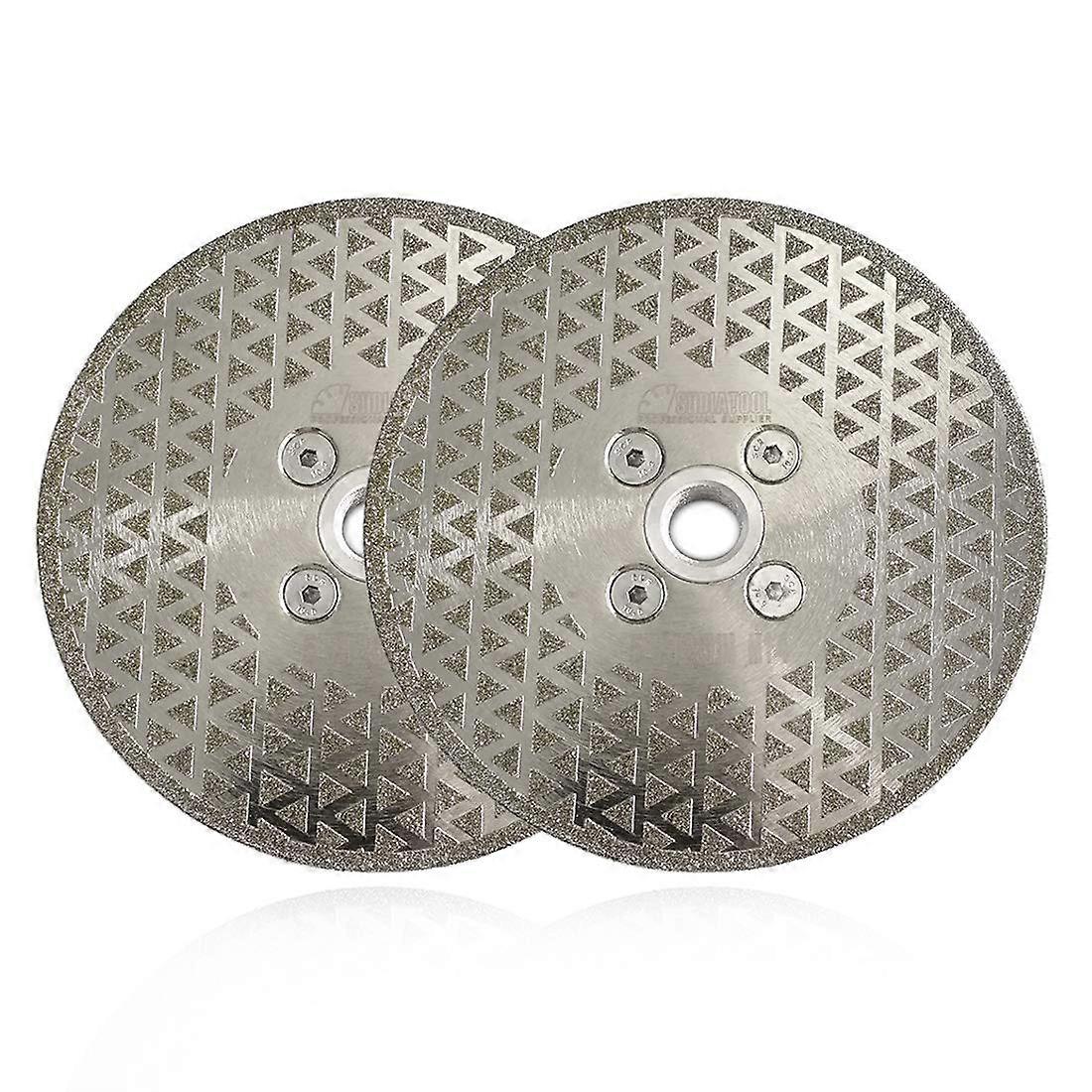 2pcs 5"/125mm Electroplated Diamond Cutting and Grinding Discs, Grinding Single Side Diameter 125MM/5", M14 For cutting or sanding granite and marble tiles Professional quality, fast cutting speed, suitable for a variety of applications One side coating, lower cost.