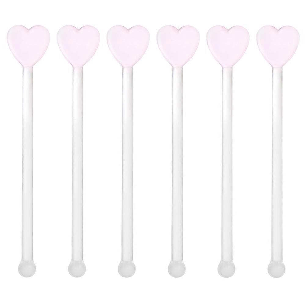 Heart Shaped Glass Mixing Rods, 6pcs Lightweight Cocktail Stirrers for Drinks, Stylish Kitchen Utensils for Parties