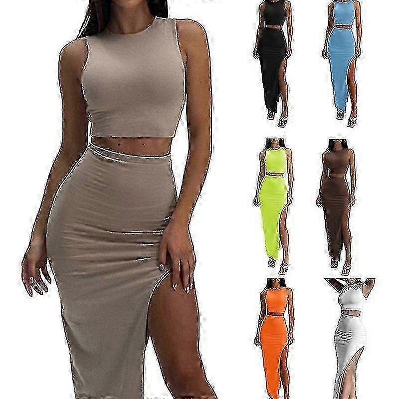 Two Pieces Skirt Set For Women Outfits Y2k Tank Tops Wrapped Hip High Slit Skirts With Cutout Clothes