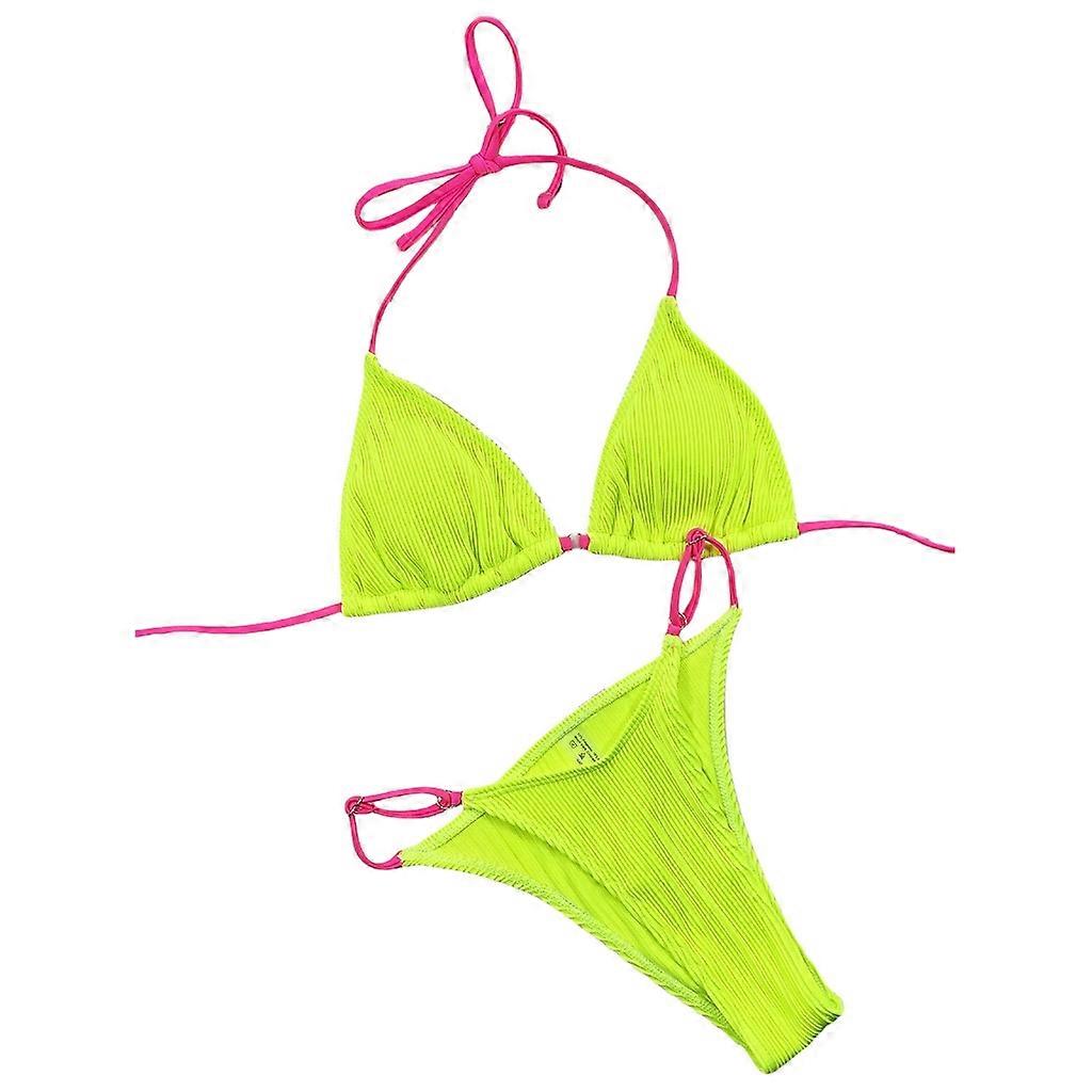 Two Pieces Backless Swimsuit for Women Halter Bikini Top and High Cut Thong Set