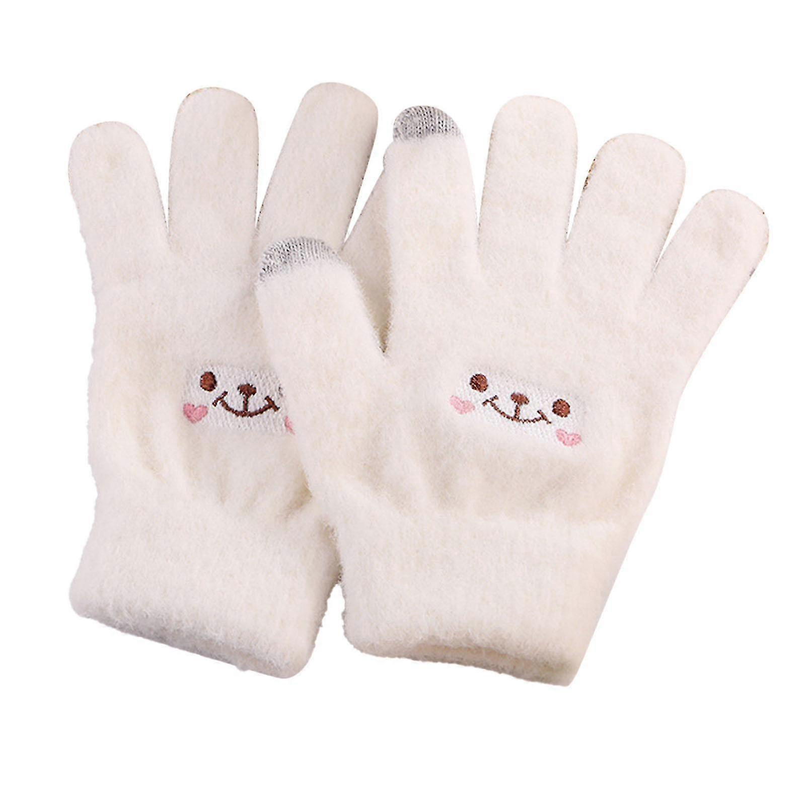 Winter Touch Screen Gloves with Smile Face Design - Elastic Thermal Knit Gloves for Women & Girls in White for Warmth & Style