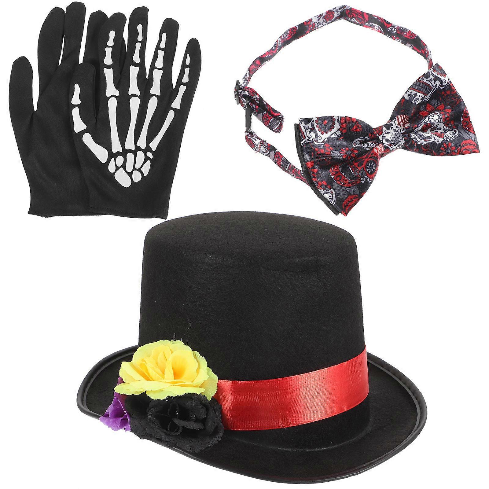 Halloween Costume Gloves And Bow Tie For Adults Skull Shape Cosplay Party Supplies 1 Set