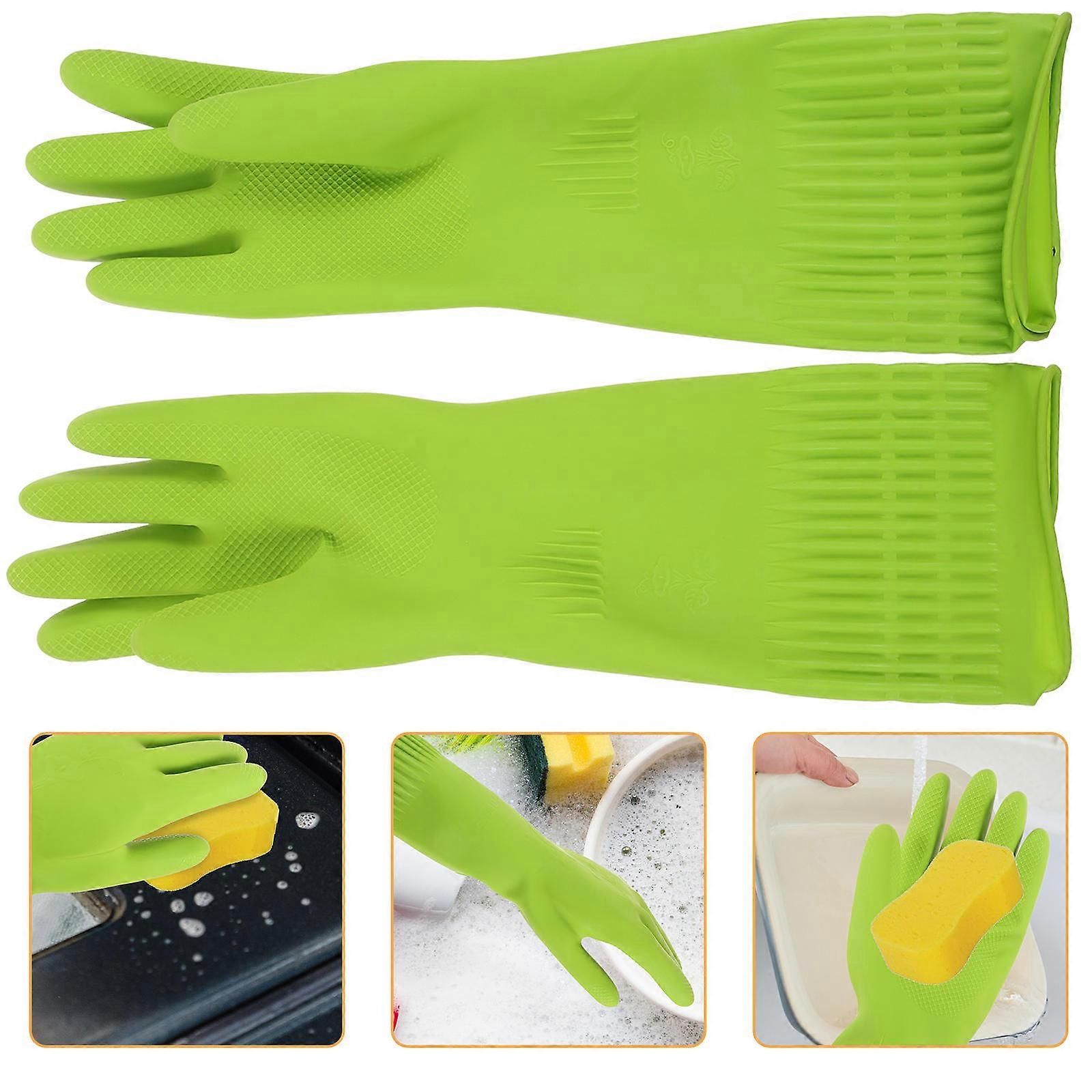 Dishwashing Gloves Long Dish Washing Hand Cover Green 38X12CM Thickened Non-Slip Protect Hands 1 Pair