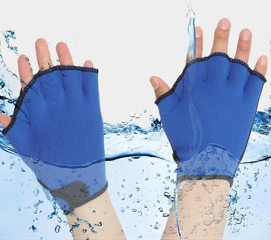 Adult Half Finger Aquatic Gloves with Adjustable Wrist Strap Diving Webbed Gloves Aquatic Exercise Swim Gloves(bl CJX