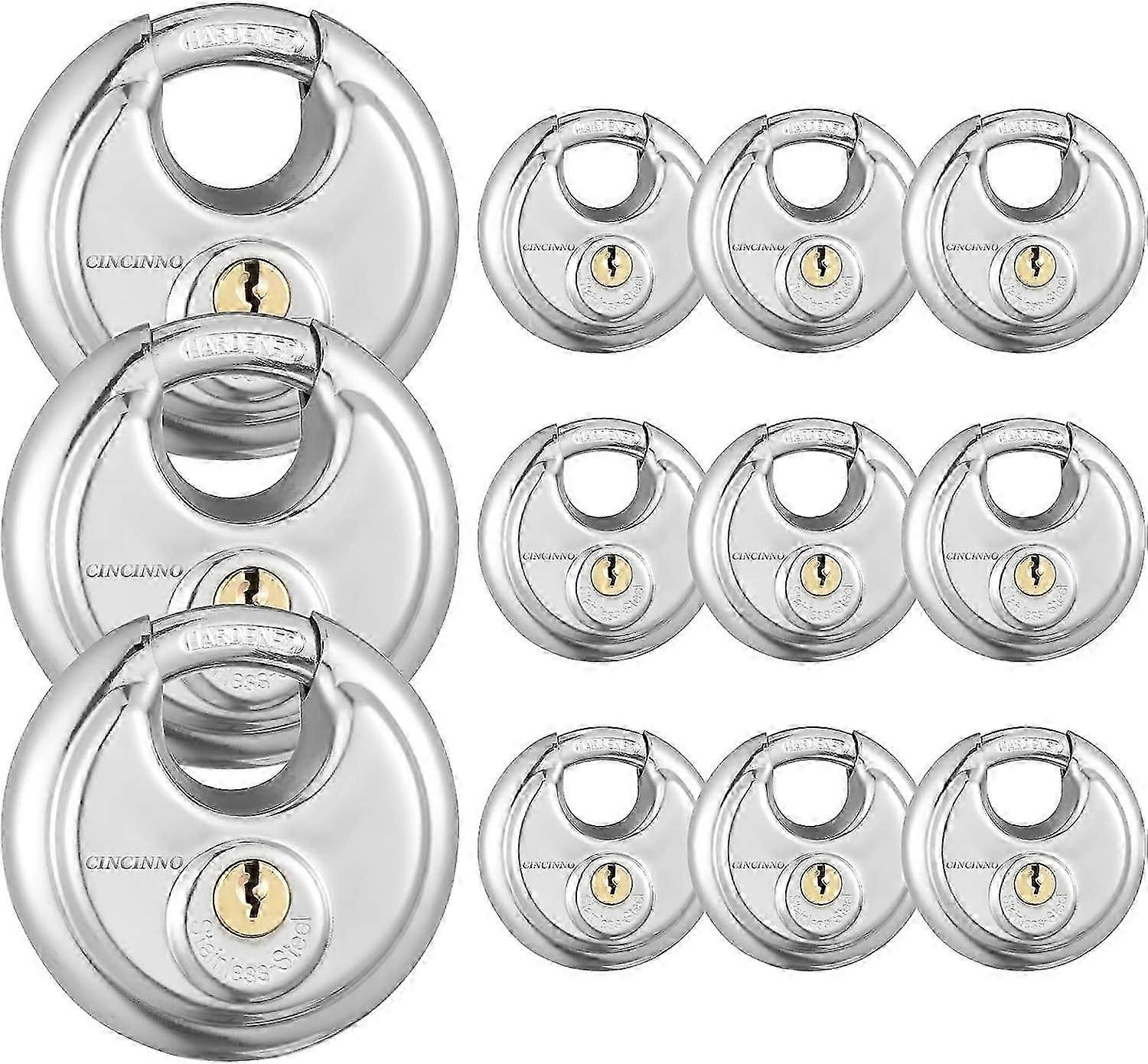 Discus Padlock with Key, Stainless Steel Storage Lock with 2-3/4 in. Wide, 3/8 in. Diameter Shackle, Heav Duty Disc Lock for Storage Unit, Sheds, Gara