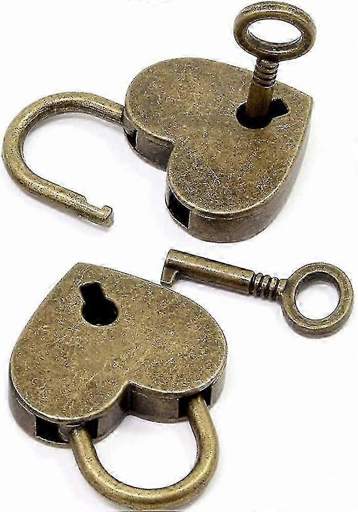 Vintage Heart-Shaped Padlock with Key, Mini Metal Lock for Diaries, Jewelry Boxes, Cabinets, Bronze Finish