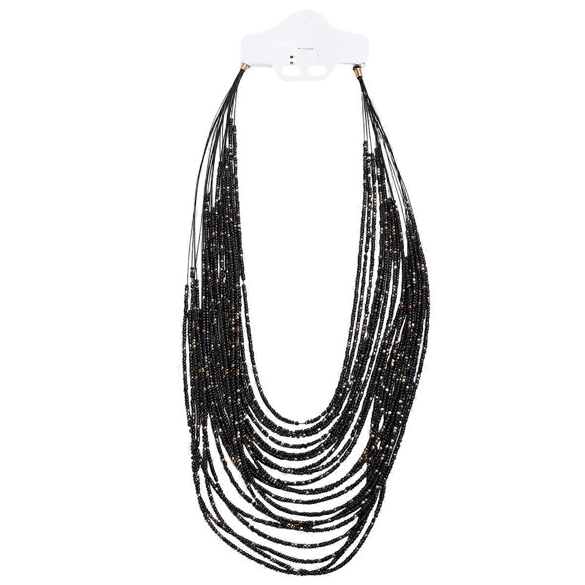 Layered Chain Necklaces Black Retro Beads Necklace Fashion Exaggerated Pendant Multi-layer Design Bohemian Style Women 1Set