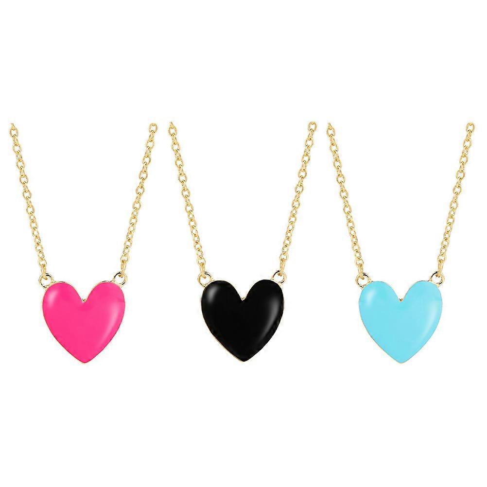 Clavicle Necklace Women Valentine's Day Heart Shape Simple Design Rose Pink 2.6x2.4cm 3Pcs
