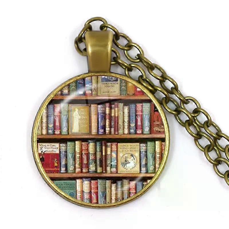 Hot Old Book Necklace Vintage Library Art Pattern Glass Cabochon Pendant Badge Statement Necklace Nerd Reader Bookworm Gifts