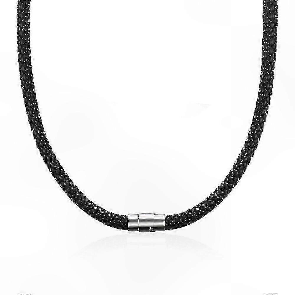 Men's Black Leather Necklace with Magnetic Clasp and Stainless Steel Accents, 4/6/7MM Braided Cord for Stylish Everyday Wear