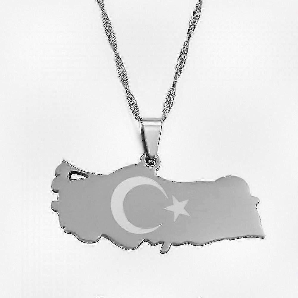 Turkish Map Pendant Necklace in Gold and Silver Tone for Women and Men, Patriotic Jewelry Inspired by National Symbol
