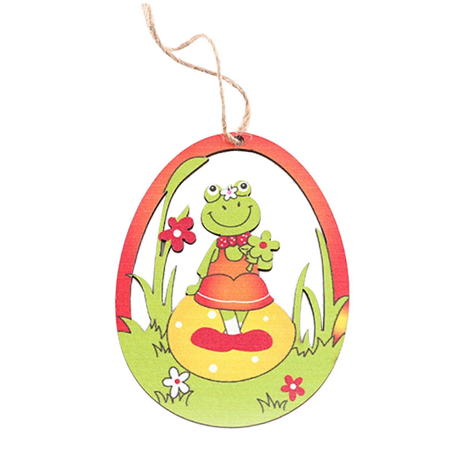 ["brand new and high quality\nFeatures:\nEaster decor: When spring hits, it's for time for the Easter Bunny! What better way to celebrate Easter than with Easter bunny ornaments?This fun, cute Easter bunny,for frog and more decoration is great for Easter trees, fireplace mantel decor.\nGreat gift: It a great gift for someone who loves Easter or has a spring for time birthday.\nEaster decoration: It can really create special and memorable moments for you and your friends.Nice decoration for Easter.\nSuitable occasions: Easy to hang on walls, above tables, corridors and trees and more.\nAdd festive atmosphere: Big for touch points for festive entertainment, make your home full of festive atmosphere.\n\nSpecification:\nMaterial: Wooden\nOptional styles: -1/-2/-3/-4/-5/-6\n-1/-2/-3/-5/-6: approx.7x9cm/2.75x3.54in\n-4: approx.7.5x9.3cm/2.95x3.66in\nColor: As the picture shown\nQuantity: 10Pcs\n\nNote:\nPlease allow 0-1cm error due to manual measurement. pls make sure you do not mind before you bid.\nDue to the difference between different monitors, the picture may not reflect the actual color of the item. Thank you!\n\nPackage Contents:\n10xWooden Easter Pendants (other accessories demo in the picture is not included.)"]