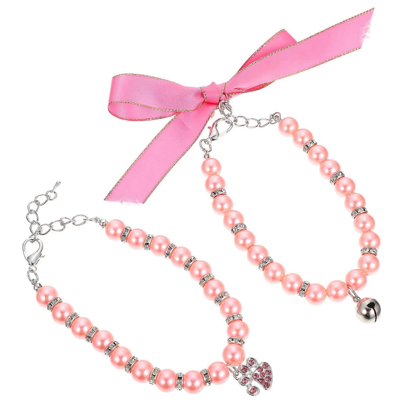 Decorative 2Pcs Pet Necklace Adjustable For Kitten And Dog Owners Lightweight Skin-Friendly Design In Pink