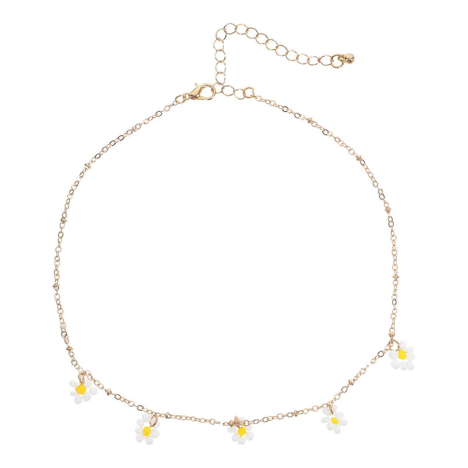 Artificial Flower Necklace Women Daisy Shaped Adjustable Fresh Style Neck Decoration White 40x0.7cm 1Set