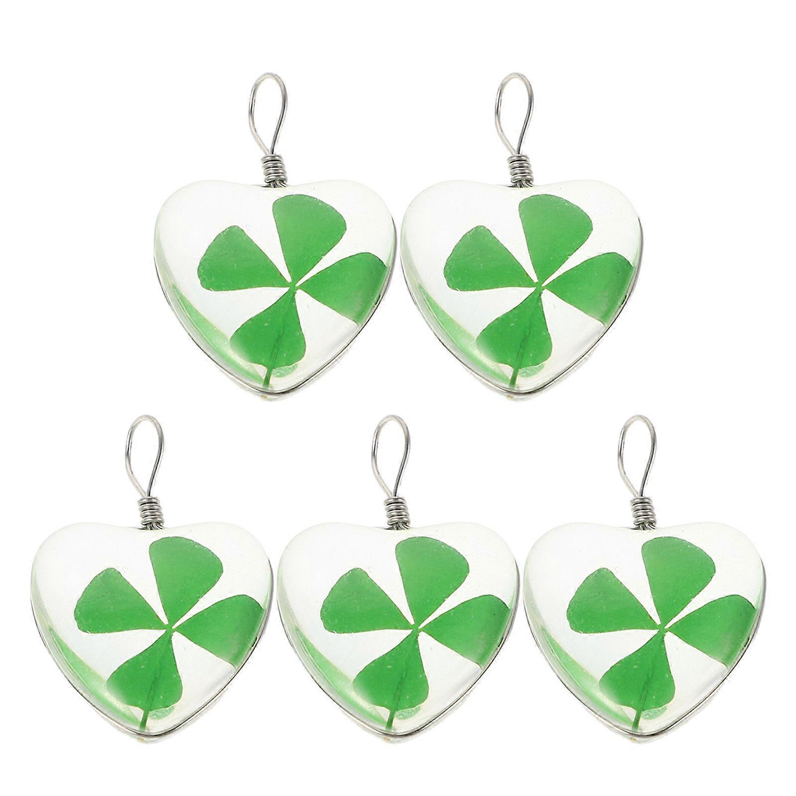 Necklace Charms Four Leaf Charm Glass Pendant Irish Culture Diy Jewelry Making Heart Shape 3.00X2.00X0.80CM 5Pcs